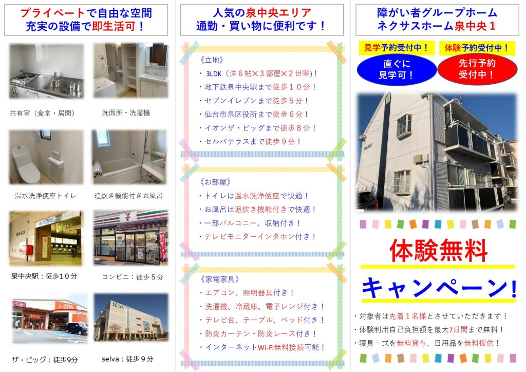 ① ネクサスホーム泉中央A1F(定員3名:満室)+3室追加